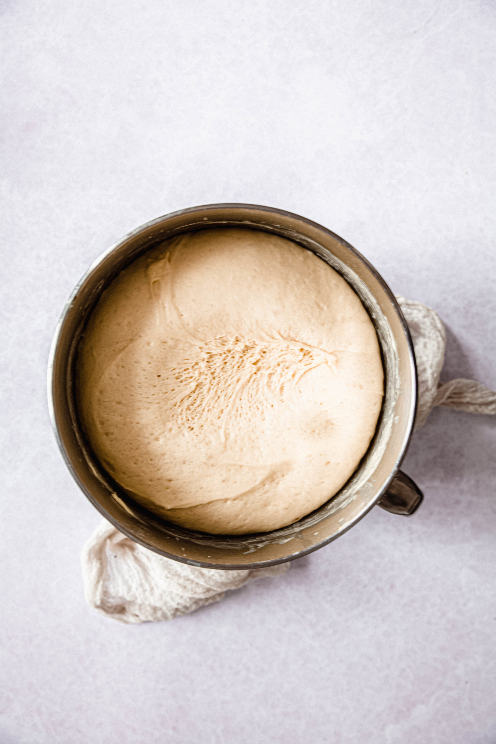 - Continuez à pétrir à vitesse modérément lente pendant environ 5 à 6 minutes tout en ajoutant un peu plus de farine au besoin pour obtenir une pâte molle et humide (la pâte ne devrait pas coller aux côtés du bol mais collera au fond.