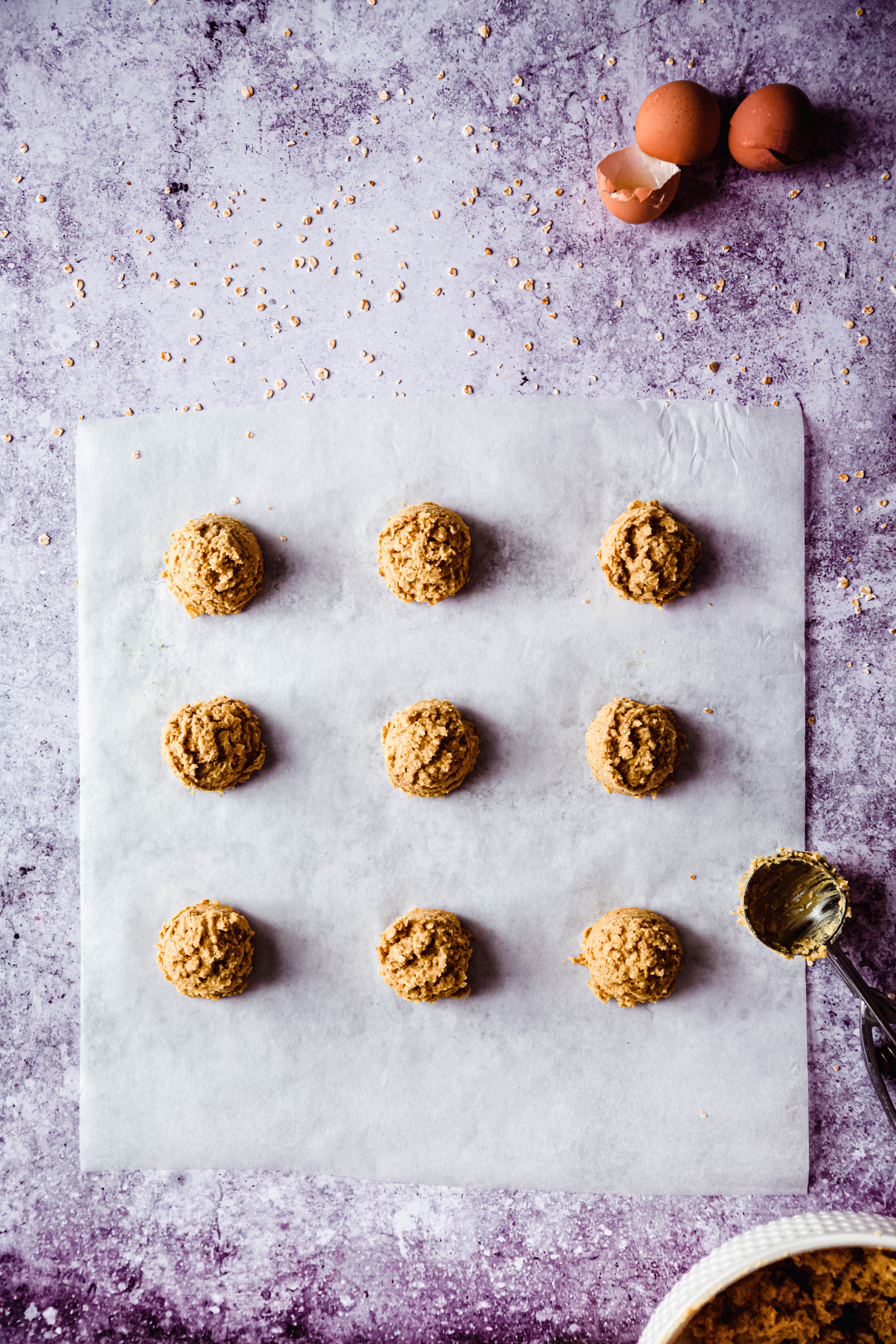 - A l’aide d’une cuillère à glace pour conservez la une taille et une forme similaire. Cuire les cookies pendant 12 minutes et laissez refroidir.