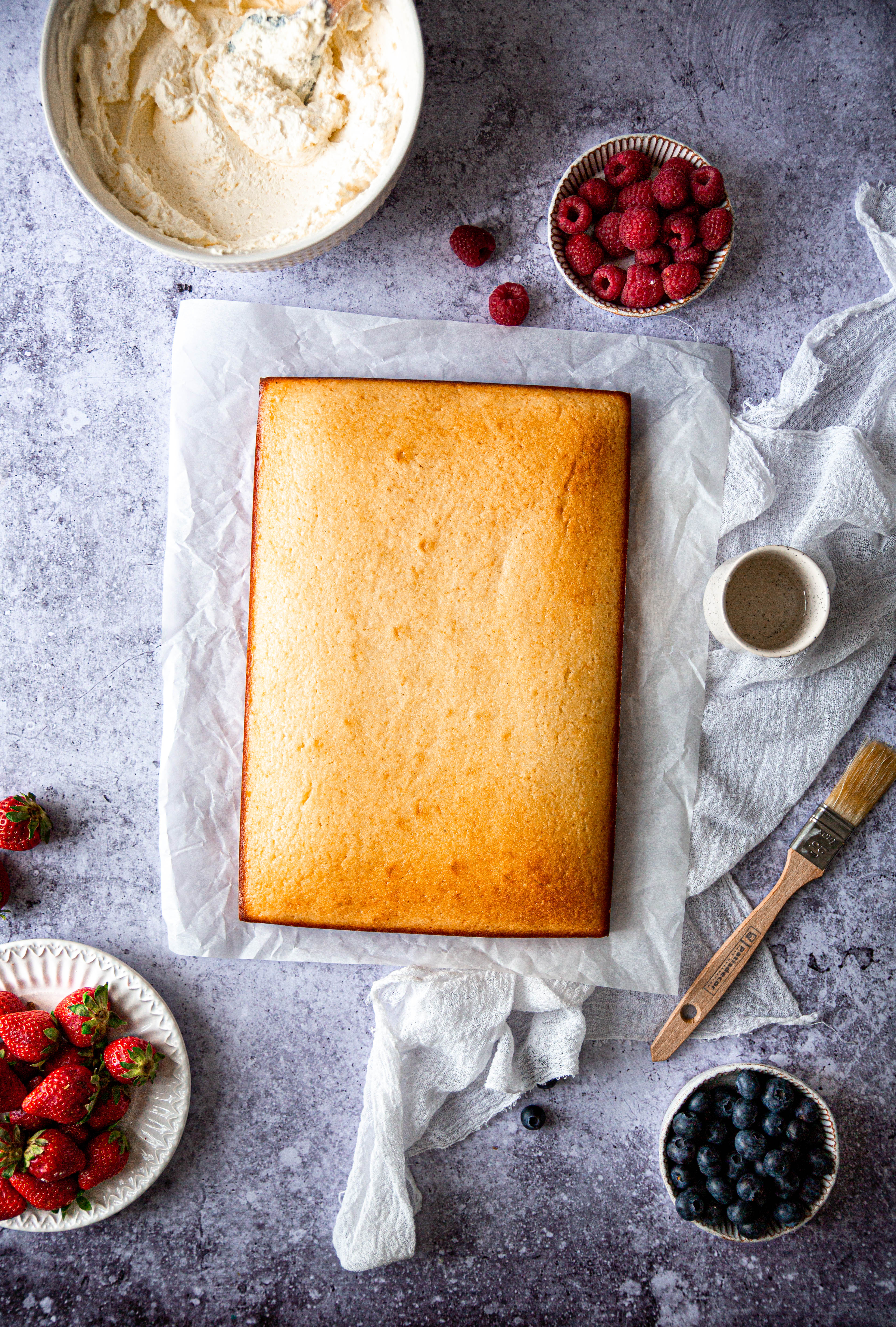 Pour avoir essayé cette recette plusieurs fois, je sais qu’elle est adaptable. Je l’utilise parfois dans mes layers cakes et en cupcake. La particularité de ce gâteau, c’est qu’il est dense, humide à la fois, tendre et moelleux. Ce n’est pas un gâteau éponge qui sert de texture pour un dessert. Il se suffit à lui-même, il est très bon. Alors, si vous y ajoutez de la crème et des fruits, imaginez !