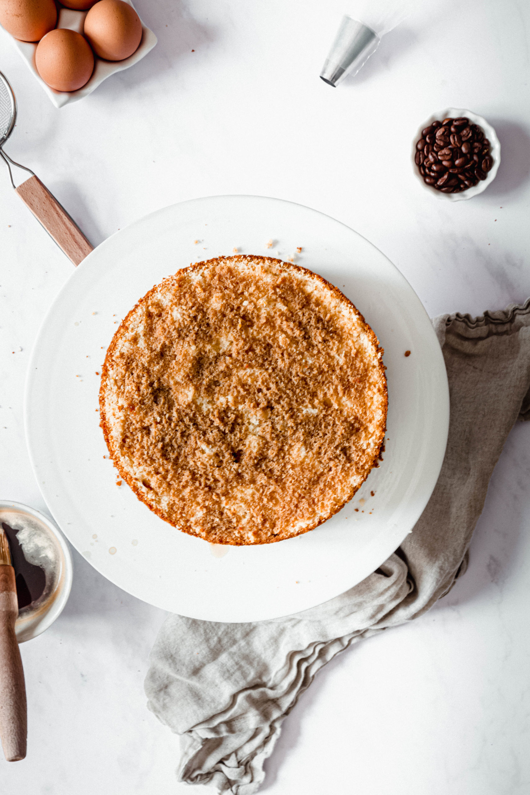 Assurez-vous de le faire avec un bon café, il n’en sera que meilleur. J’ai utilisé du café long, mais si vous faite un expresso diluez-le avec un peu d’eau. Autre chose, imbibez bien vos génoises, sinon elle seront sèche lors de la dégustation et ça ne sera pas agréable. C’est un peu comme le fraisier, appuyez avec votre doigt pour vérifier que la génoise est humide, un peu de café doit remonter.