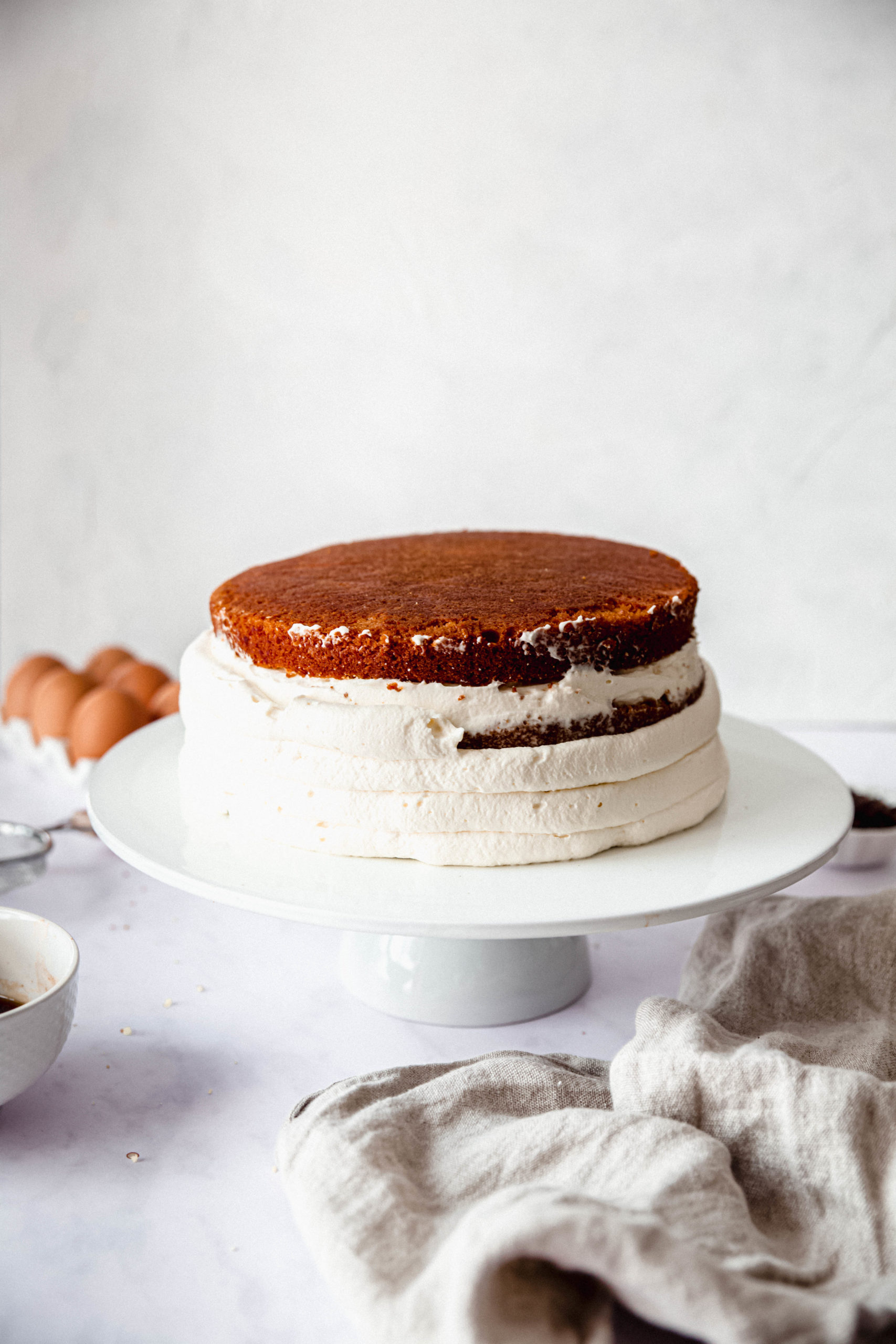 - Imbibez la deuxième génoise, et garnissez d'un autre quart de crème.