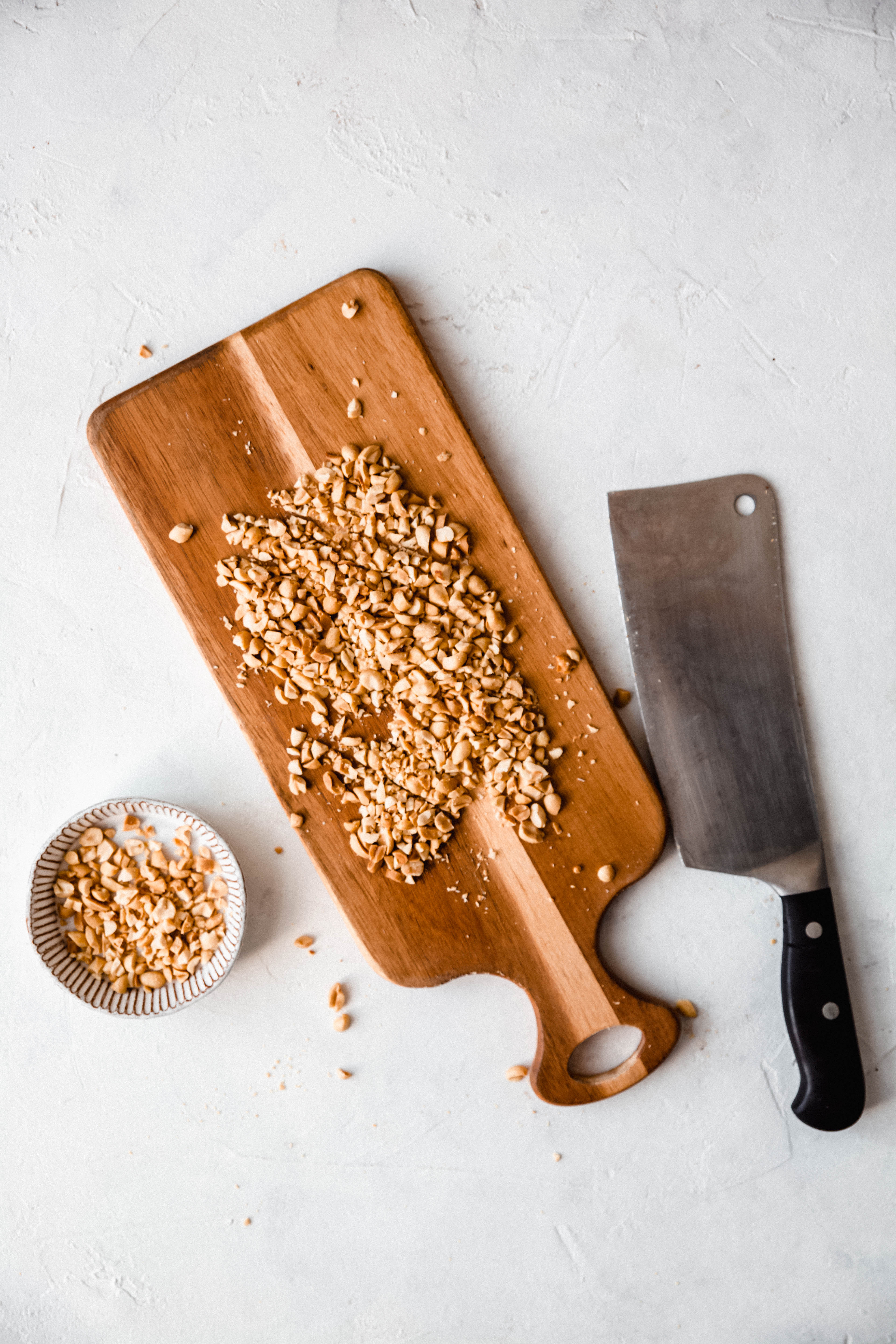 L’intérêt de cette tarte est qu’elle est simple et rapide à réaliser. Mon fond de tarte est particulier car j’ai utilisé du quinoa soufflé, que j’ai trouvé dans un magasin bio. Je vous concède, que c’est moins accessible que les flocons d’avoines. Néanmoins, vous pouvez mettre de l’avoine à la place, vous aurez toujours le croustillant grâce au cacahuètes et chips. Le quinoa à un petit goût fumé très agréable. Réaliser un fond de tarte différent demande d’équilibrer les saveurs et les textures. On attends d’une tarte qu’elle soit croquante et gourmande avec sa garniture.